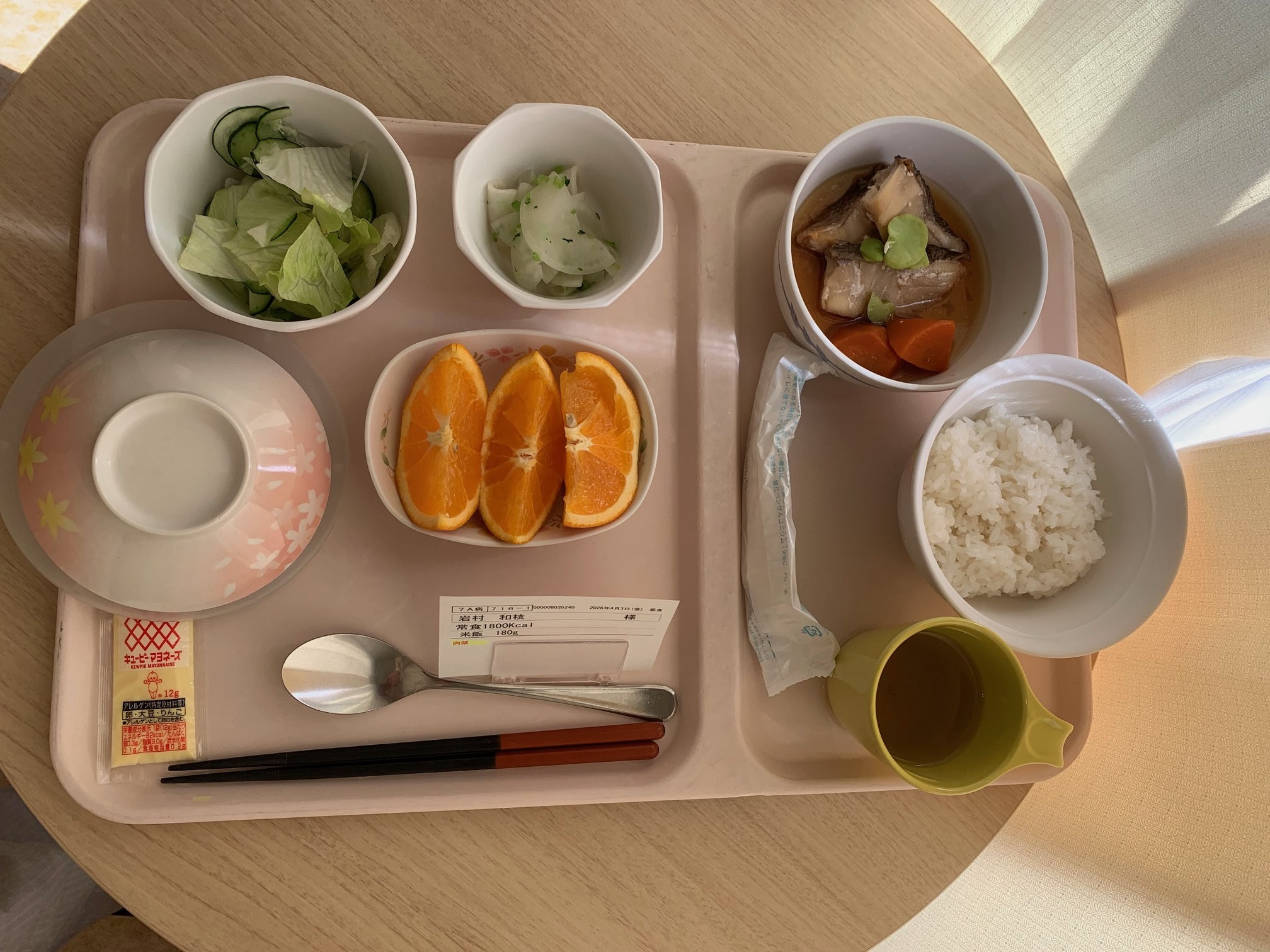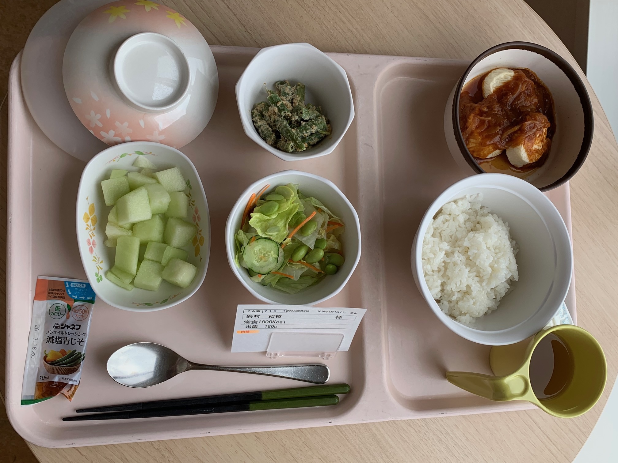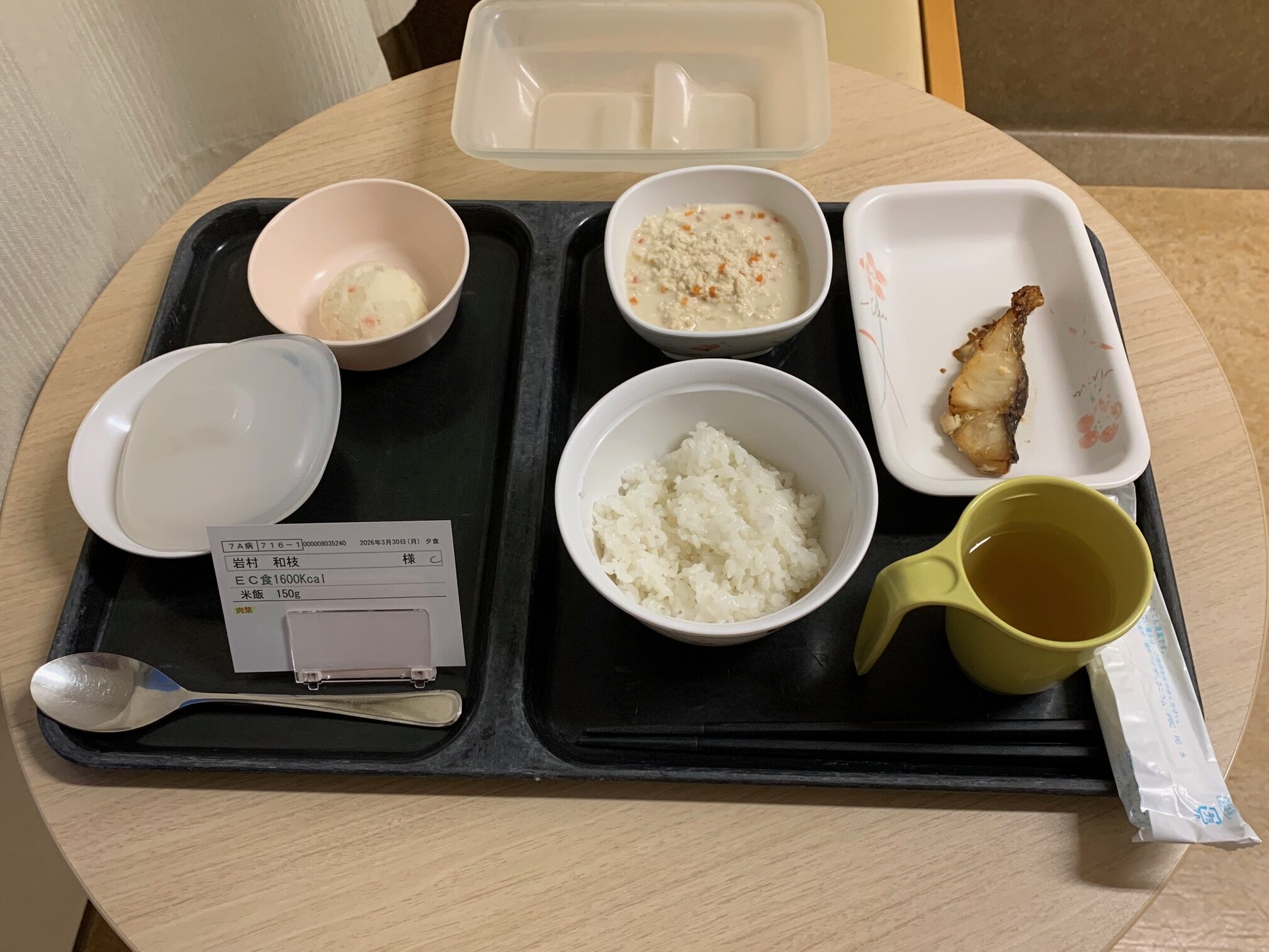 説明が終わるともう夕食でした。初の病院食です。